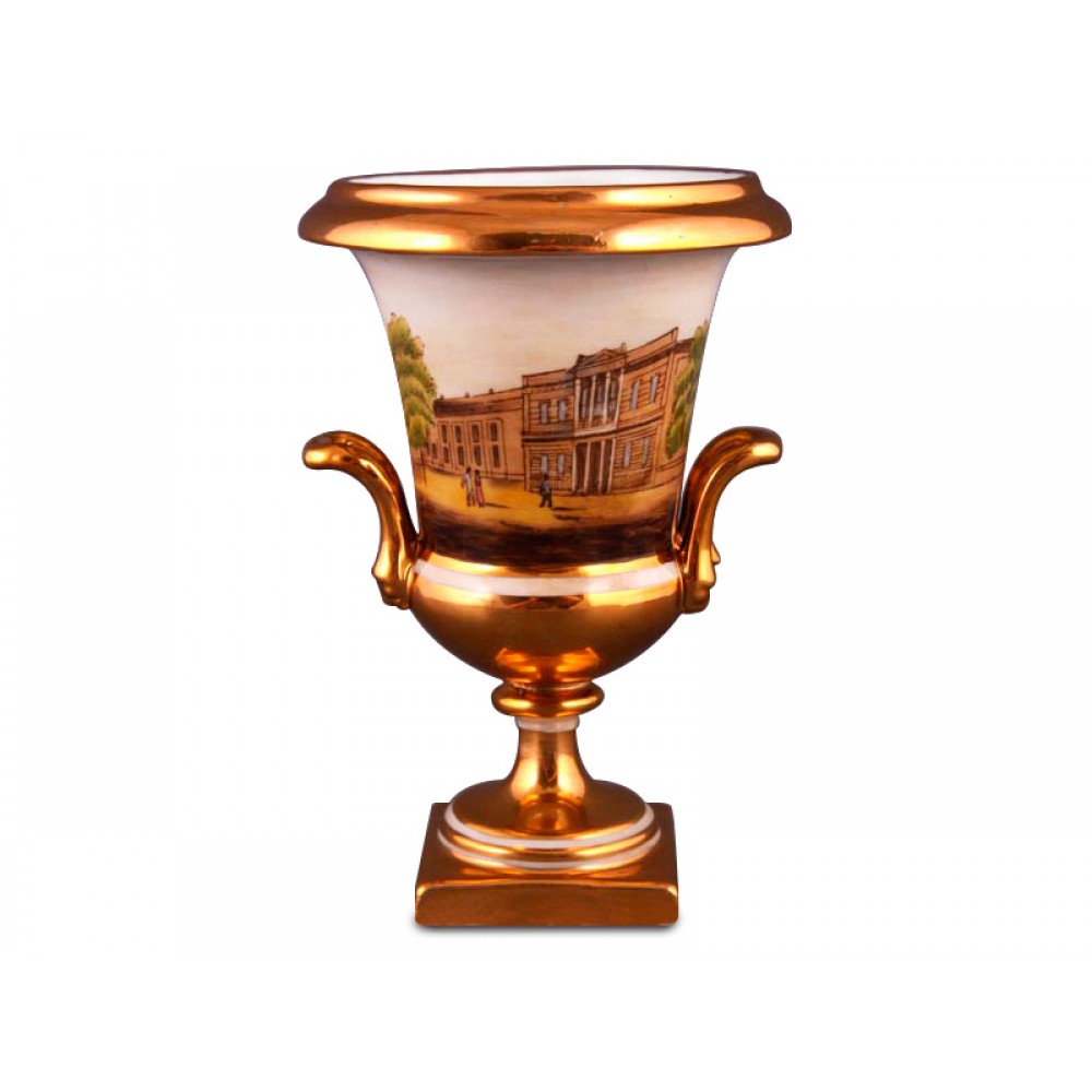 Ваза имеет размер 16 см, что делает ее компактной и удобной в использовании. Ее дизайн выполнен в классическом стиле - форма вазы удачно дополнена орнаментом и росписью, которые подчеркивают ее прекрасный внешний вид.