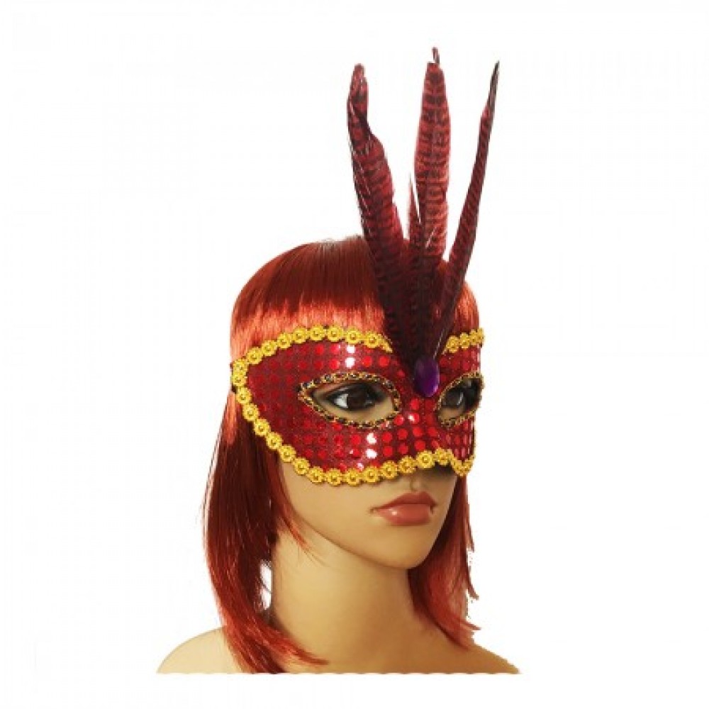 Описание товара: Размеры - 23х9см; Цвет - красный; Материал - пластик, стразы; Венецианская мас..