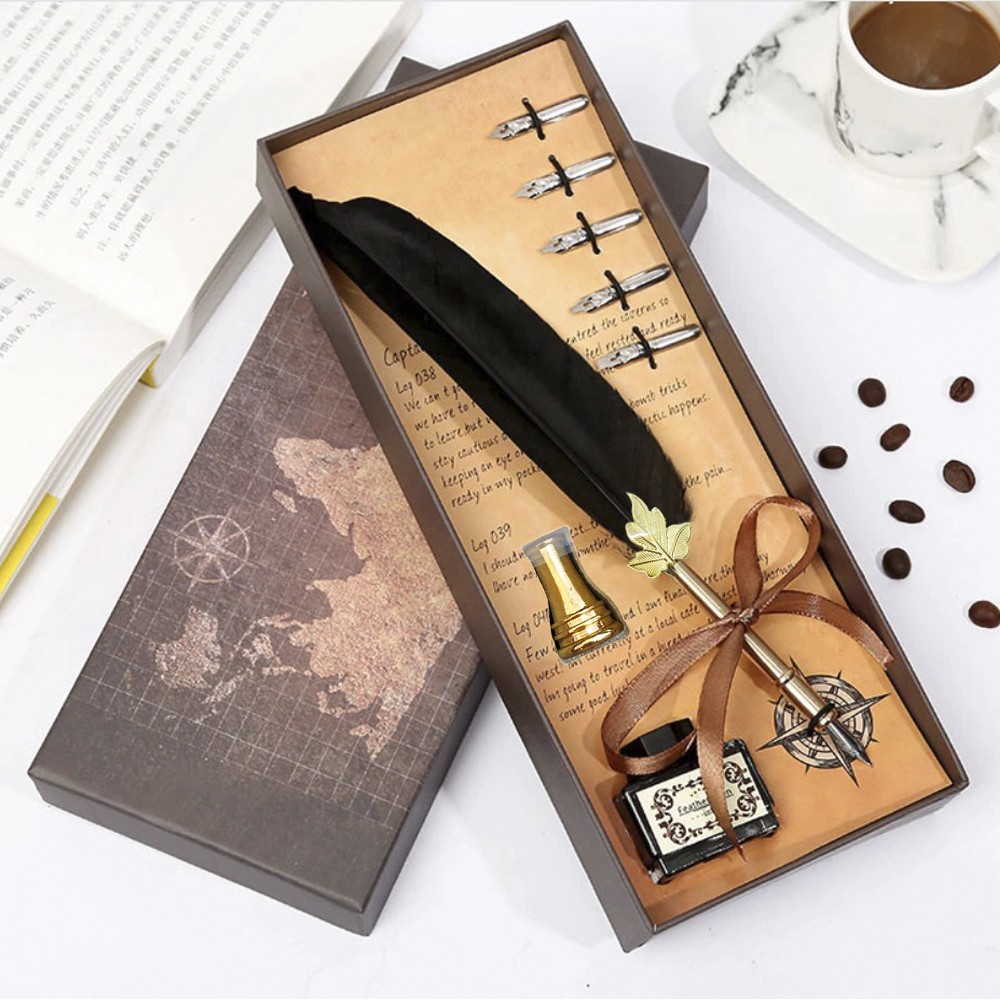 Винтажный подарочный набор для каллиграфии Ручка перьевая (черный)