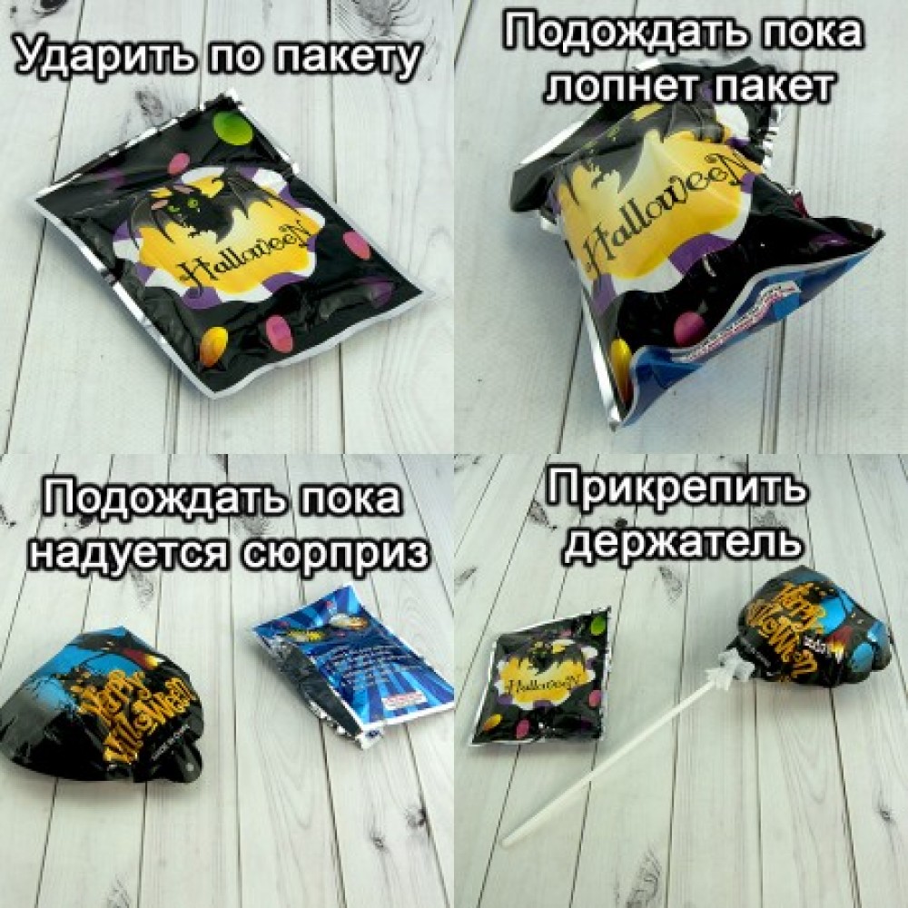 Воздушная хлопушка Шарик сюрприз Хэллоуин с держателем (уп 12шт)