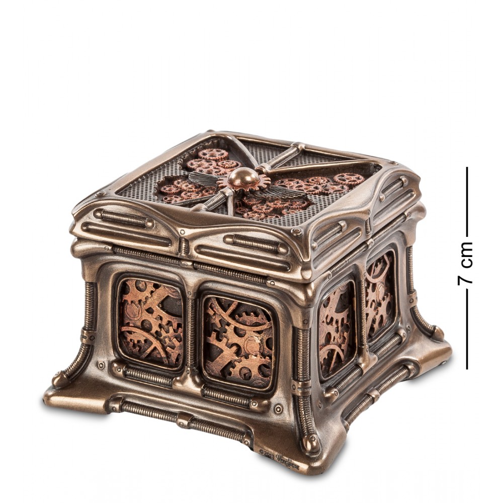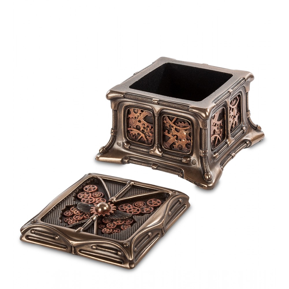 Шкатулка в стиле Стимпанк, высотой 7 см.; Стимпанк - ретро-футуристический стиль, который представляет собой симбиоз викторианского стиля с научной фантастикой. Детали интерьера в этом стиле отлично подойдут для людей, которые не в восторге от технического прогресса и устали от сплошной компьютеризации и автоматики.