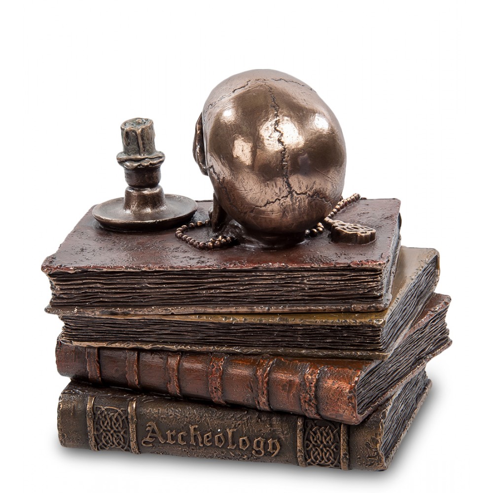 Шкатулка « Тайные знания » , сделанные из полистоуна цвета меди – неплохая альтернатива классическим шкатулкам: она вряд ли привлечет внимание грабителей, которые, скорее всего, примут ее за малоценное украшение, но зато привлечет внимание родственников и друзей, которые приметят ее в кабинете или библиотеке.