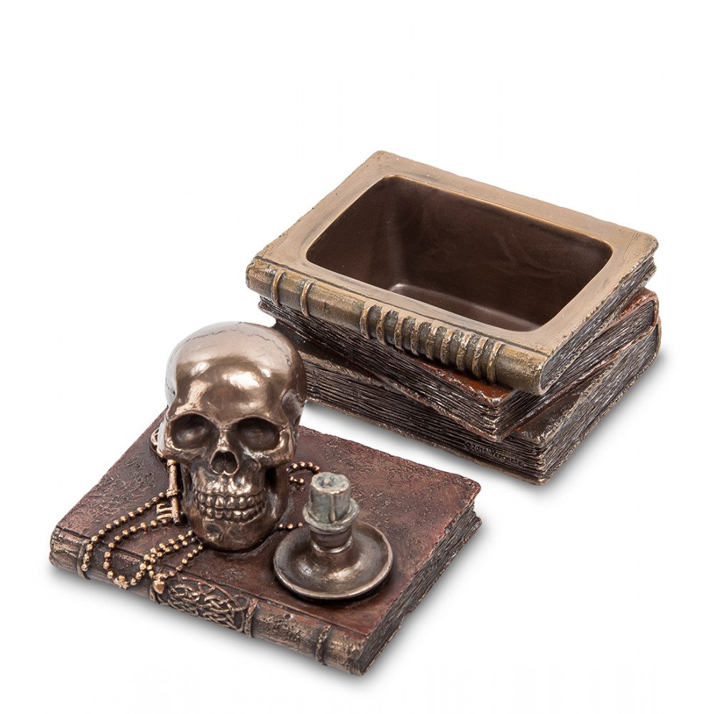 Шкатулка выполнена в виде нескольких старинных книг, на стопке которых расположен старинный ключ на металлической цепочке, подсвечник с огарком свечи и человеческий череп. Все эти предметы несомненно являются ключом к страшной тайне, которую вам скоро посчастливится разгадать. Возможно, у вас уже есть тайна, о которой не обязательно знать окружающим; попробуйте доверить ее шкатулке « Тайные знания » , или приобретите необычный предмет для кого-нибудь из друзей, любящих конспирологию и увлеченно разгадывающих загадки истории.