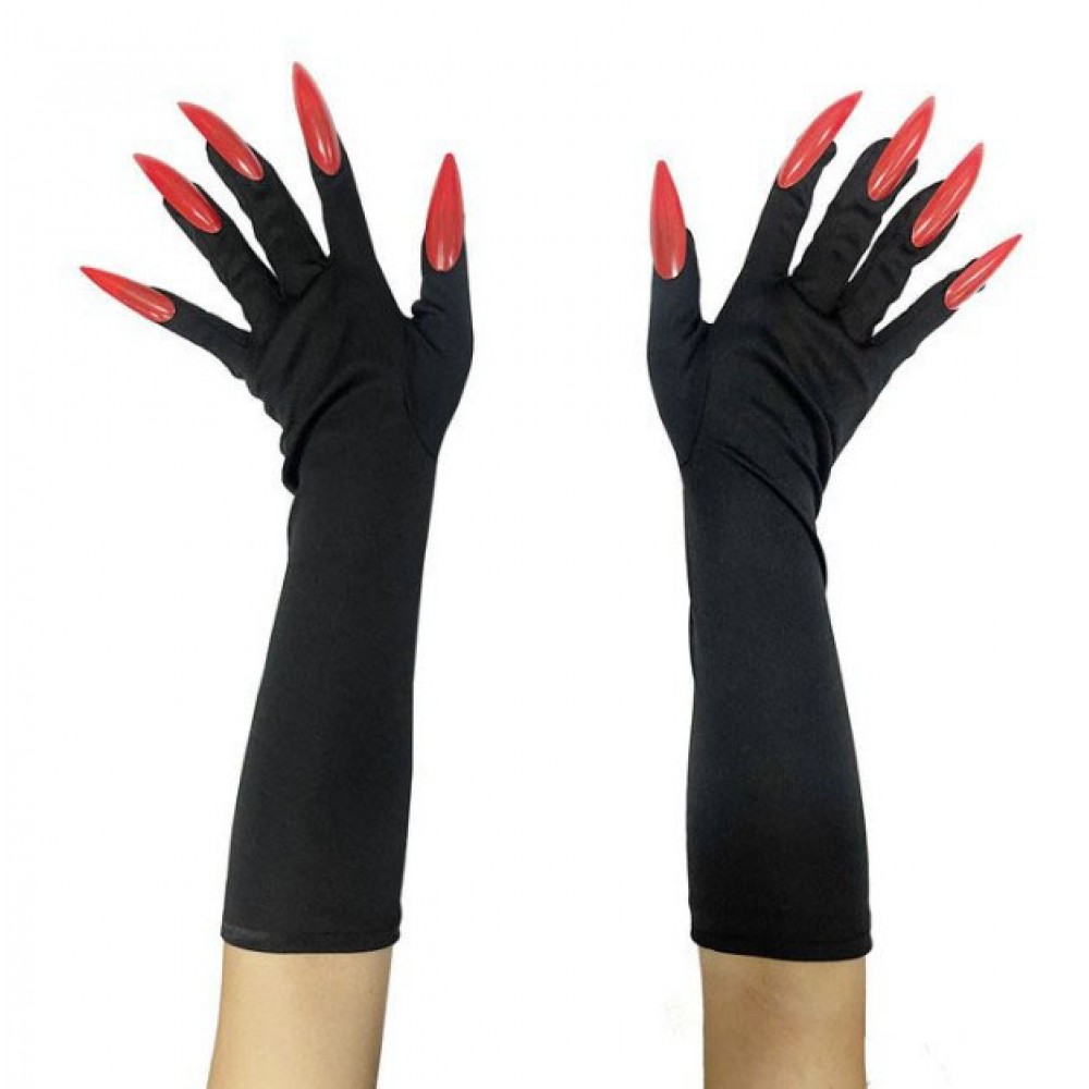 Рукавички відьми чорні з червоними кігтями 42 см, на Хелловін