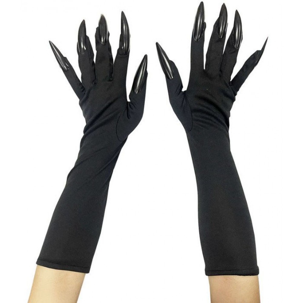 Рукавички відьми чорні з кігтями 42 см, на Хелловін
