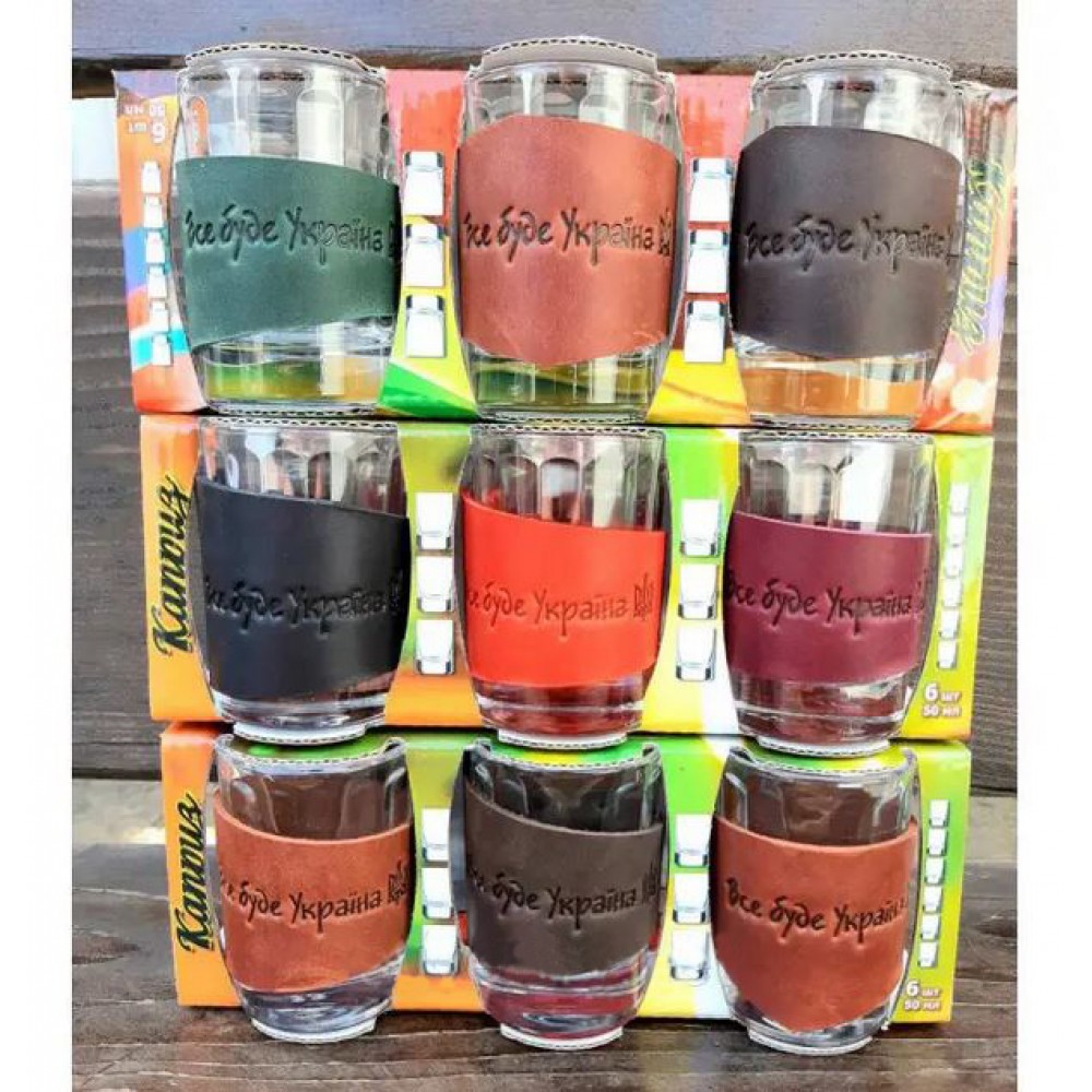 Рюмка в натуральній шкірі з написом Все буде Україна (2177) (за 1 шт.)