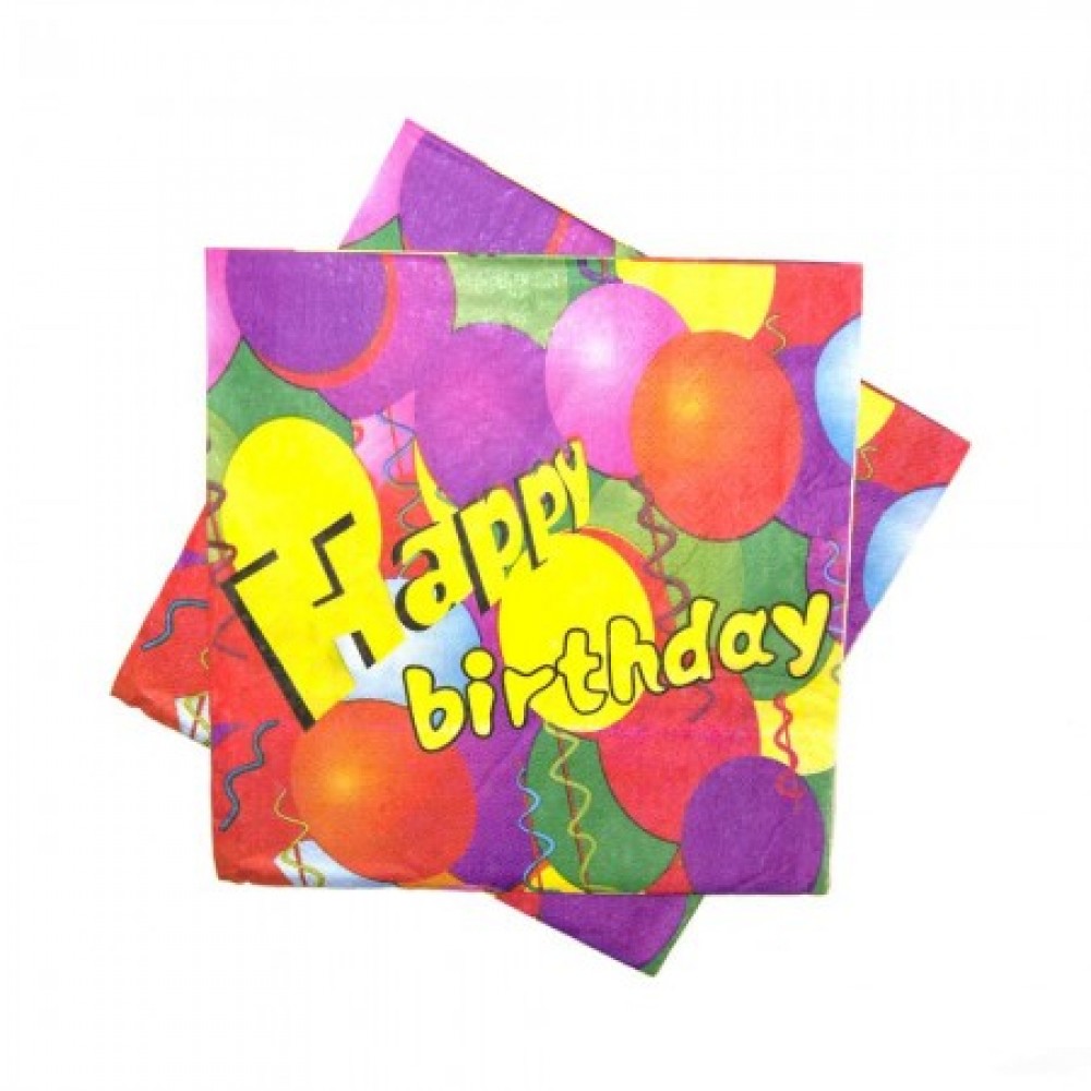 Серветки Кульки (уп. 20шт) - яскраві серветки з написом Happy Birthday на тлі повітряних куль для оригінального сервірування столу допоможуть прикрасити дитяче свято та доповнити його грайливою родзинкою. Організувати День народження для дорослого значно простіше, ніж вигадати захоплюючий сценарій для дитячої компашки. Чого тільки не вигадаєш, щоб заінтригувати малолітніх непосид! Найвишуканіші страви не викличуть такого інтересу, як прості (на думку дорослих) серветки. Казкові герої та тематичні написи на столовому приладді викликають у дитячих головках бурю емоцій та позитиву. Найоригінальніший подарунок не зрівняється зі святковим столом, сервірованим у казково-мультяшному стилі. На віртуальних прилавках інтернет-магазину Карнавал Жартів можна вибрати та купити святкові комплекти для організації дитячих заходів або занурення в безшабашну атмосферу дитинства.