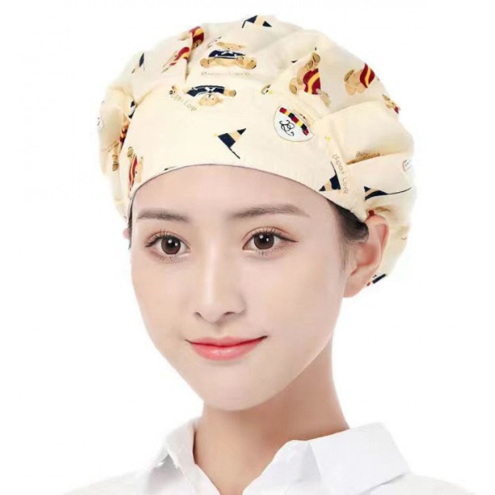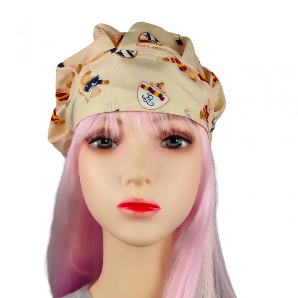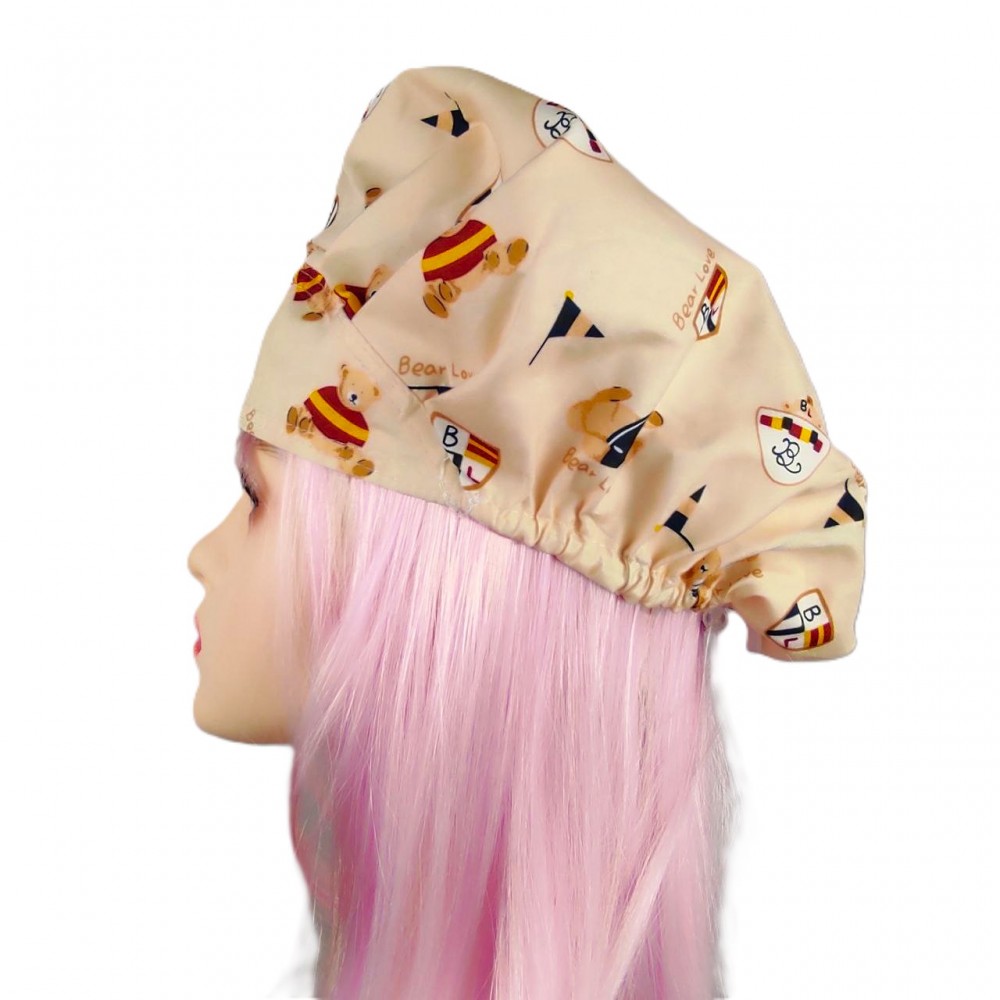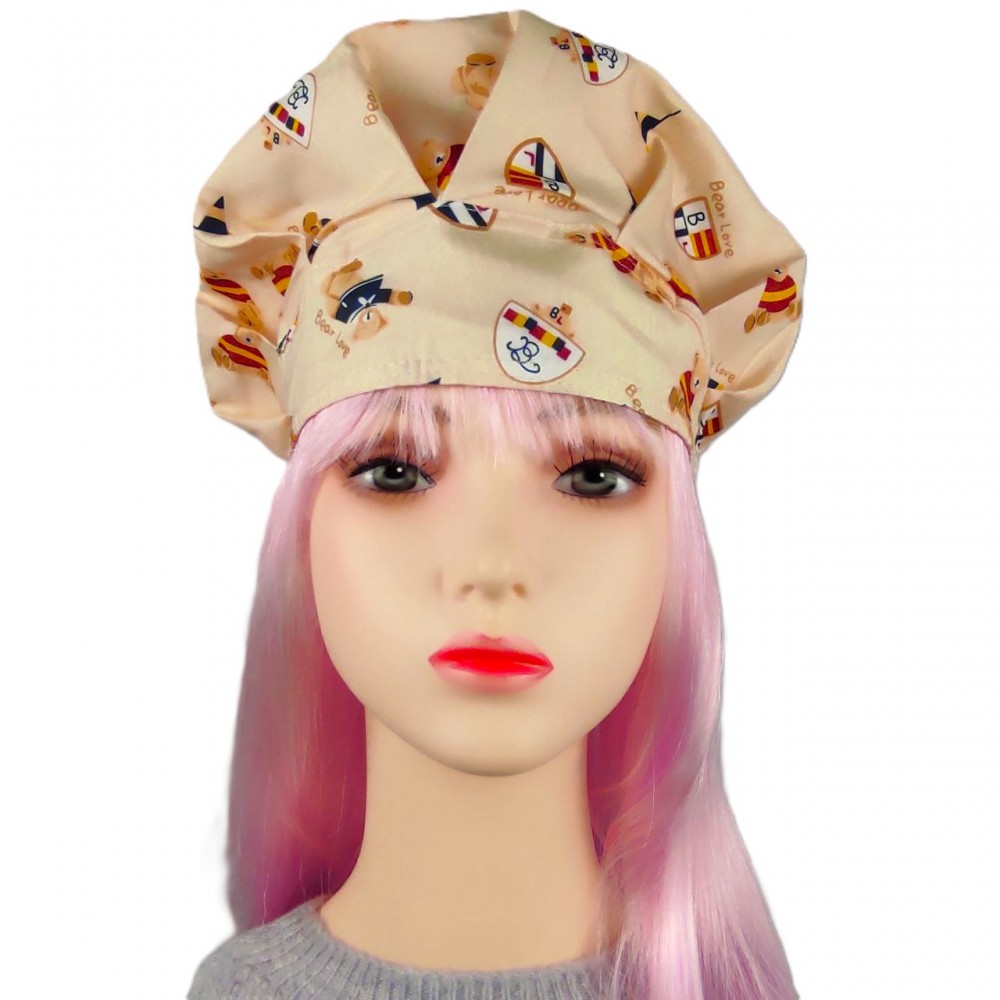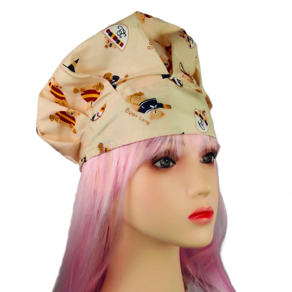 Професійна кухарська шапочка з унікальним кремовим дизайном, прикрашеним милими принтами. Ідеально підходить для роботи на кухні, забезпечуючи максимальний комфорт і гігієнічність протягом усього робочого дня.