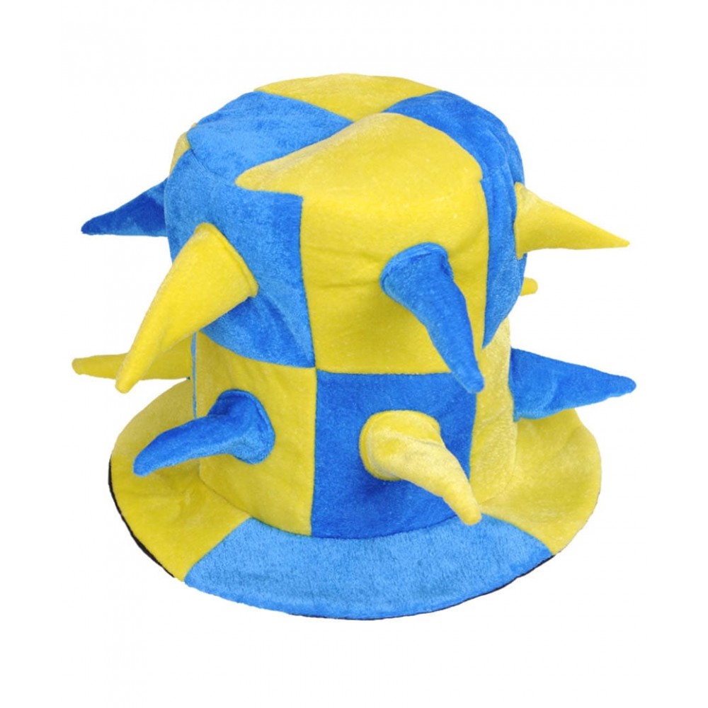 Шапка циліндр с рожками, синьо-жовта LF25-10