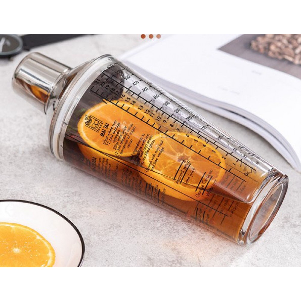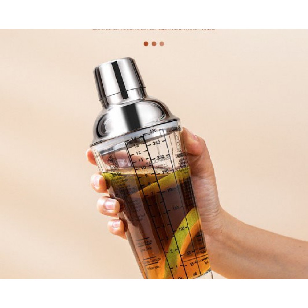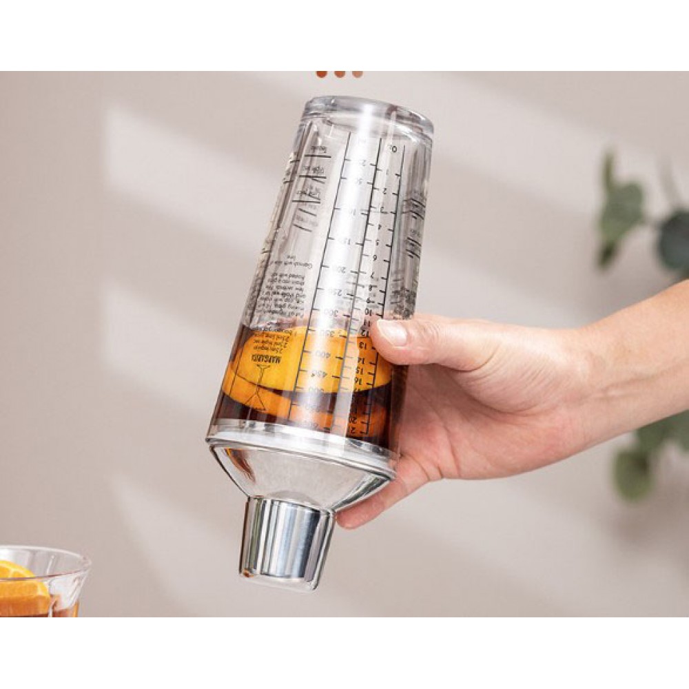 Шейкер скляний 400 мл з ситечком та мірною шкалою, 3-секційний, герметичний