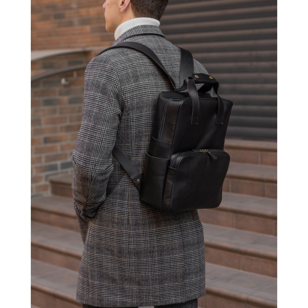 Шкіряний чоловічий рюкзак №3, натуральна шкіра італійський Краст, колір Чорний