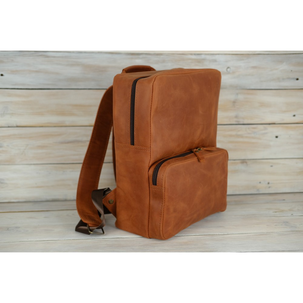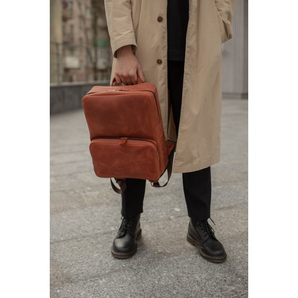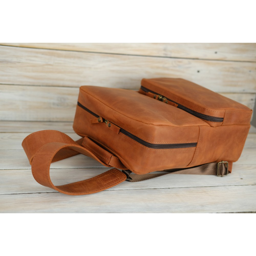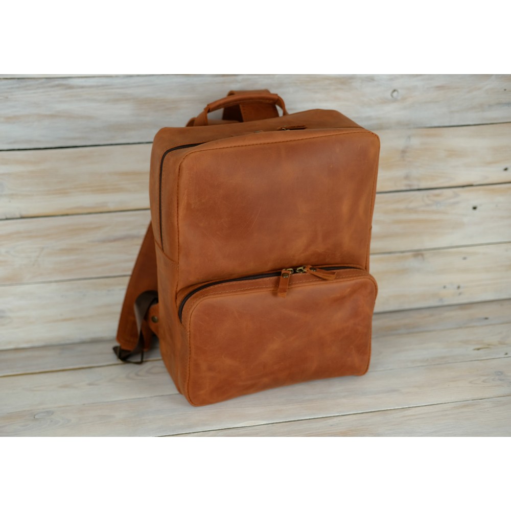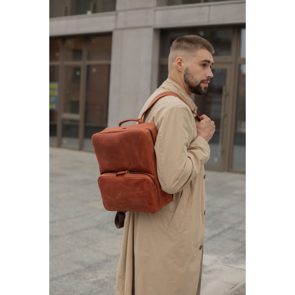 Шкіряний чоловічий рюкзак №4 натуральна шкіра Crazy Horse , колір Коньяк