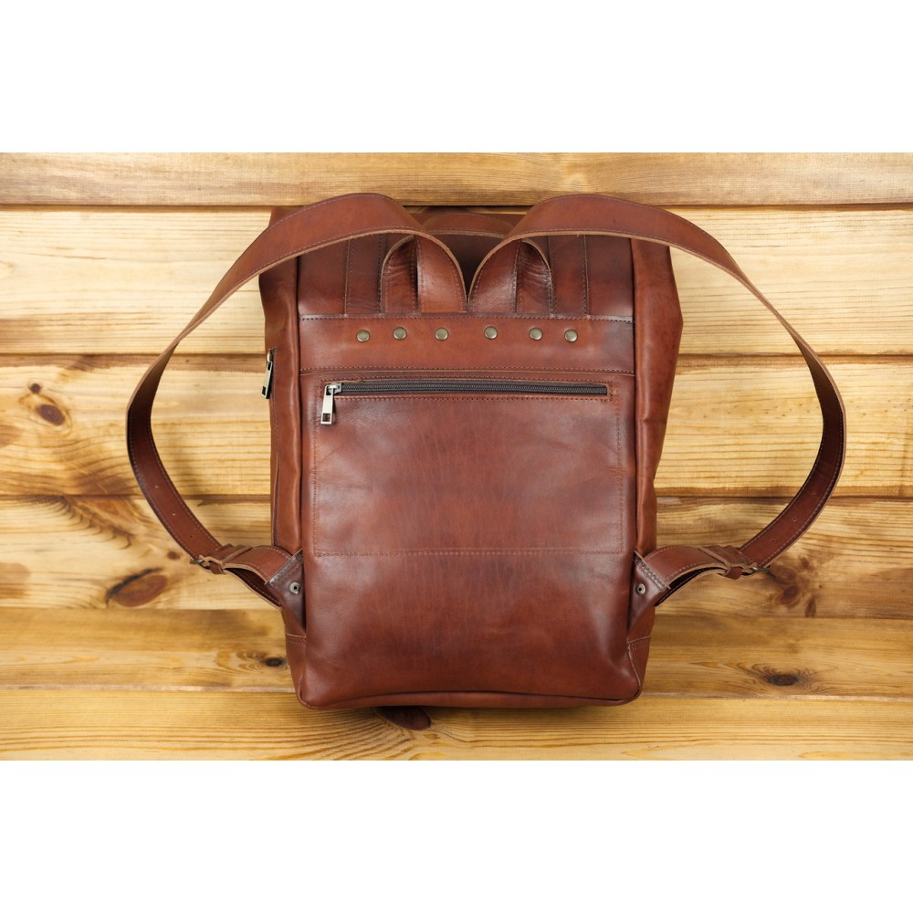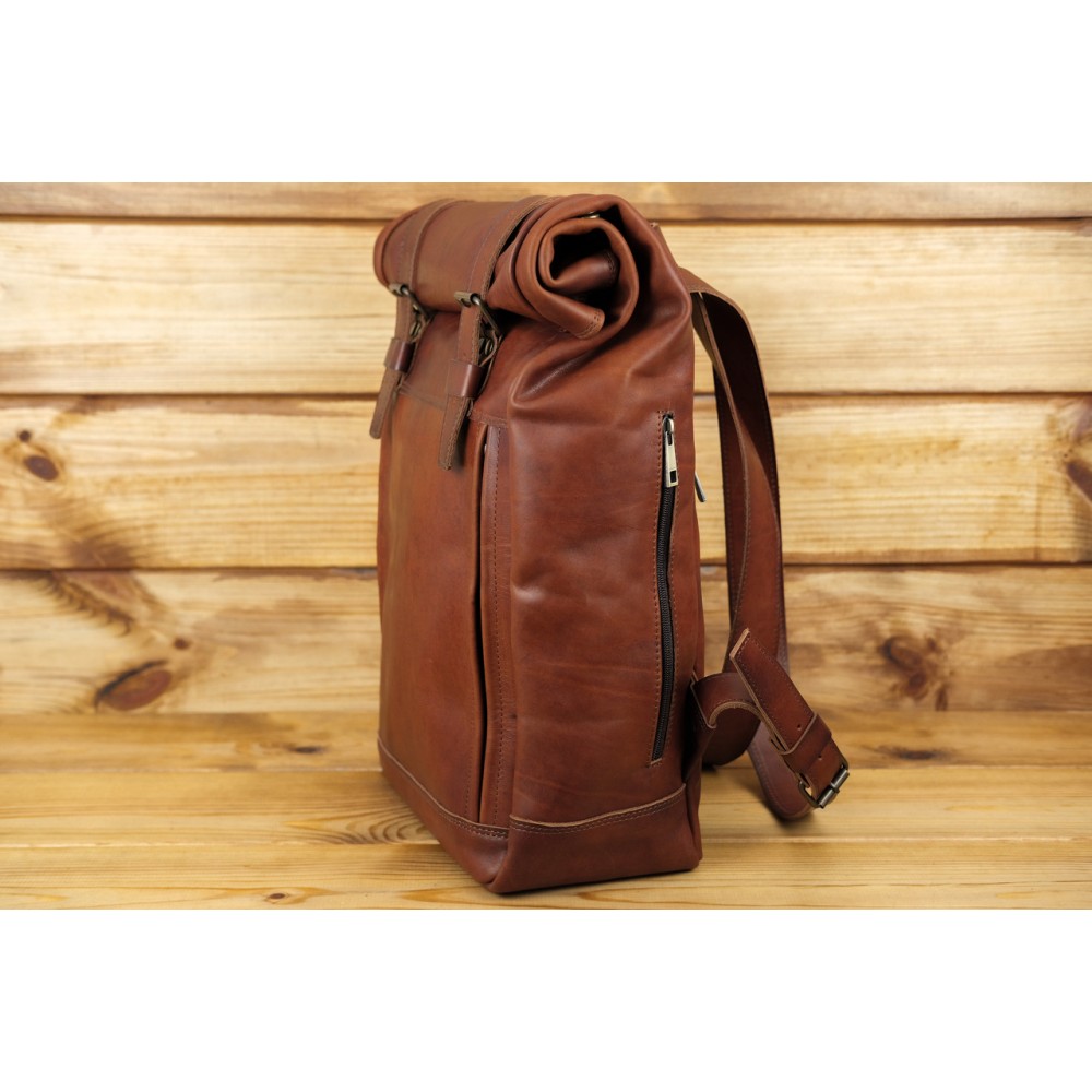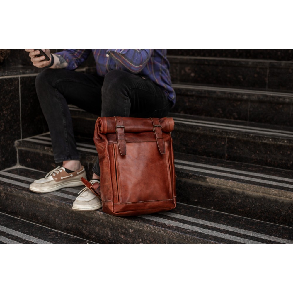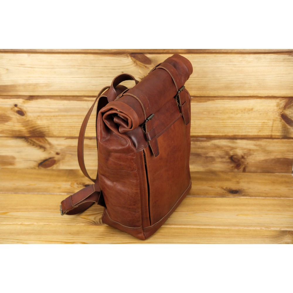 Шкіряний чоловічий рюкзак "Hankle H7" натуральна шкіра італійський Краст, колір Вишня