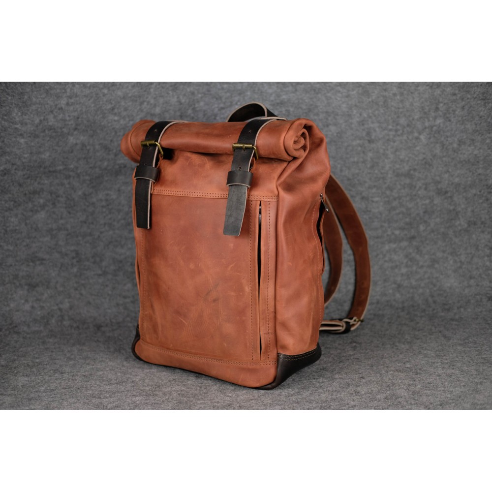 Шкіряний чоловічий рюкзак "Hankle H7" натуральна Вінтажна шкіра, колір коричневий відтінок Коньяк + Кава
