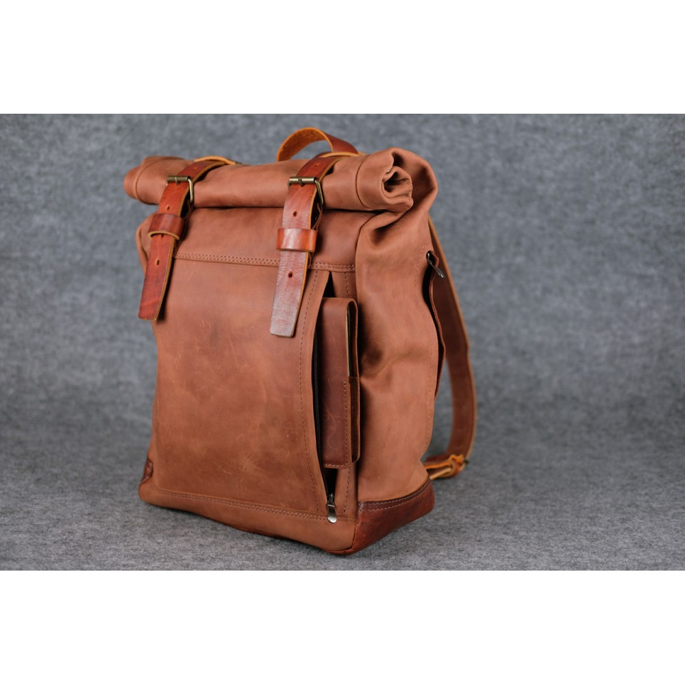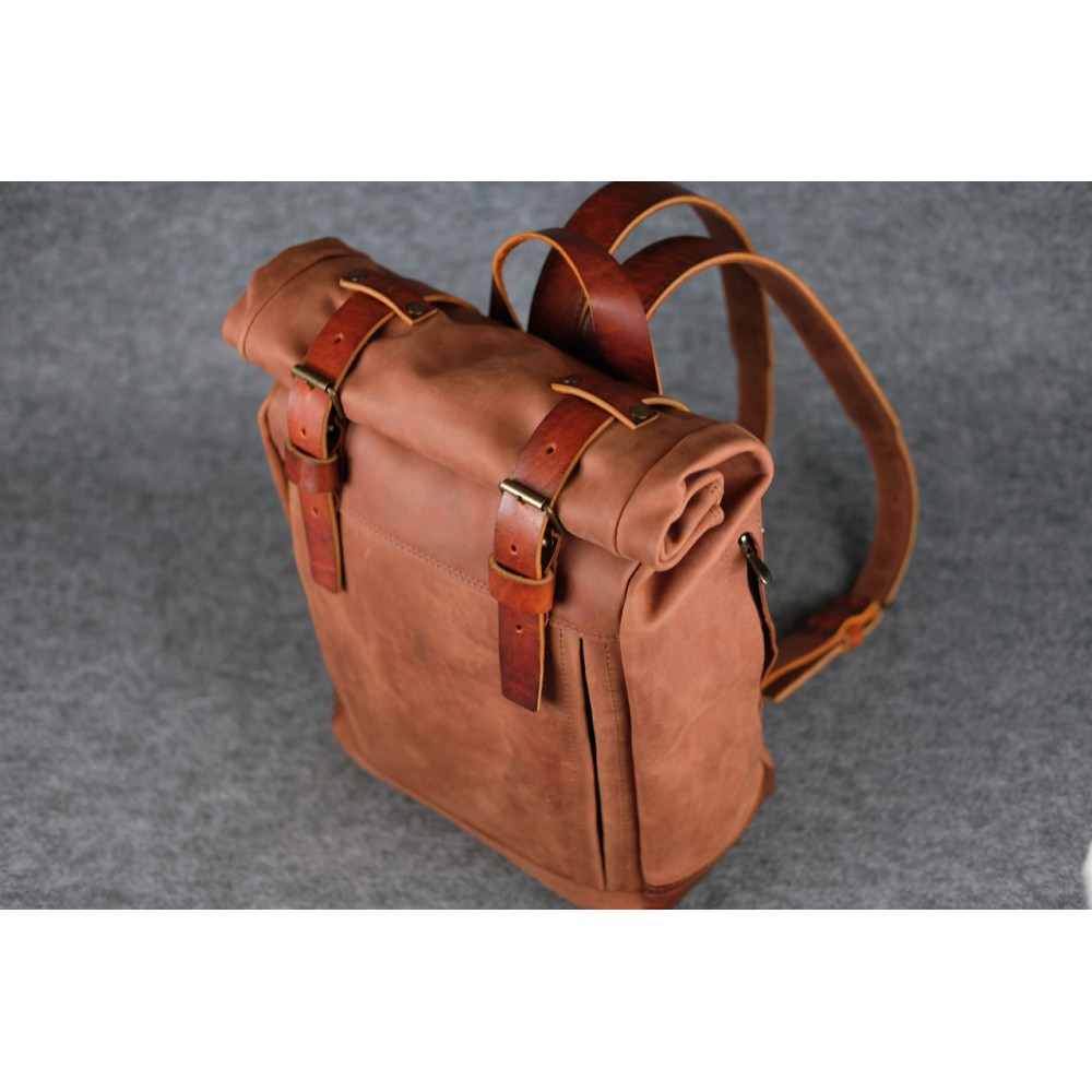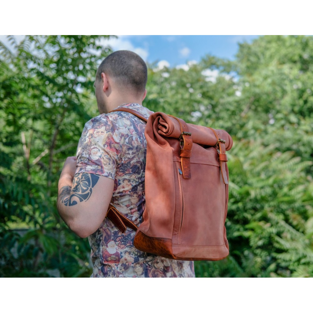 Шкіряний чоловічий рюкзак "Hankle H7" натуральна Вінтажна шкіра, колір коричневый відтінок Коньяк + Коньяк