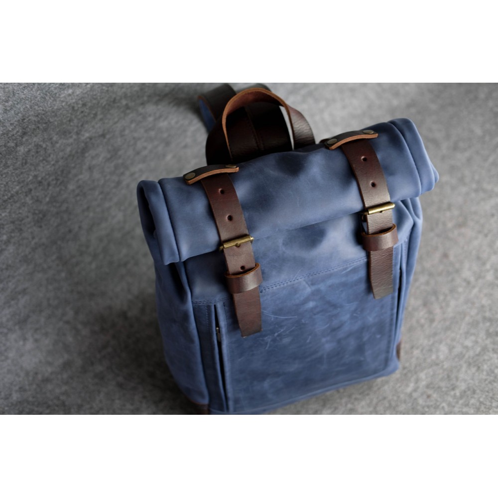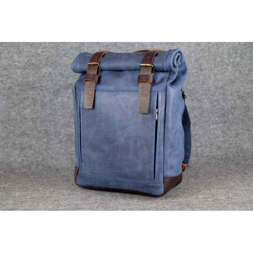 Шкіряний чоловічий рюкзак "Hankle H7" натуральна Вінтажна шкіра, колір Синій + коричневий відтінок Вишня