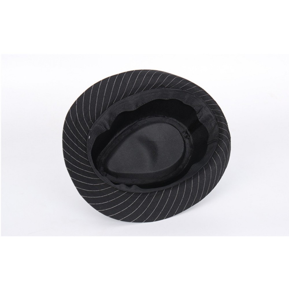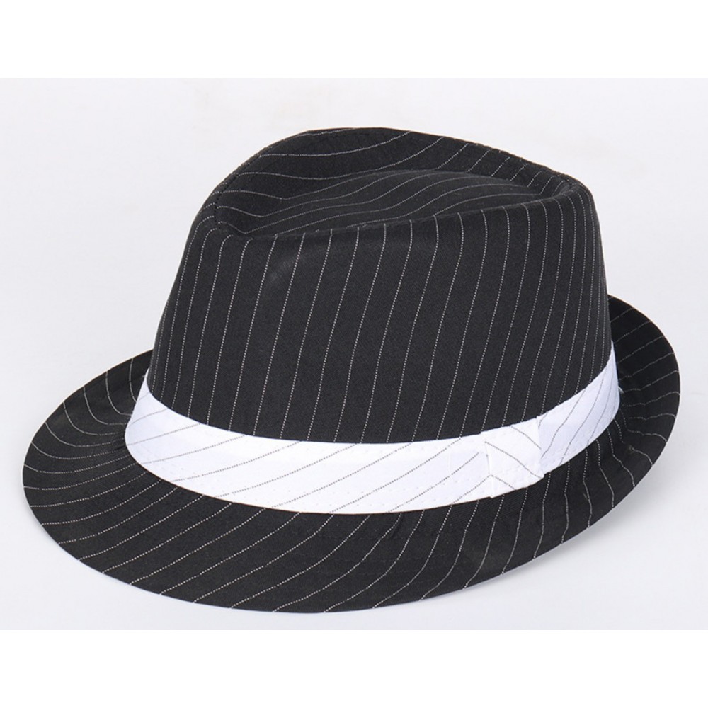 Черная шляпа «Белый Чикаго» — яркий аксессуар для образа гангстера, мафиози, джазового музыканта или гостя вечеринки в стиле Гэтсби. Тонкая светлая полоска на ткани и контрастная белая лента сразу делают образ более заметным, особенно на фото и видео.