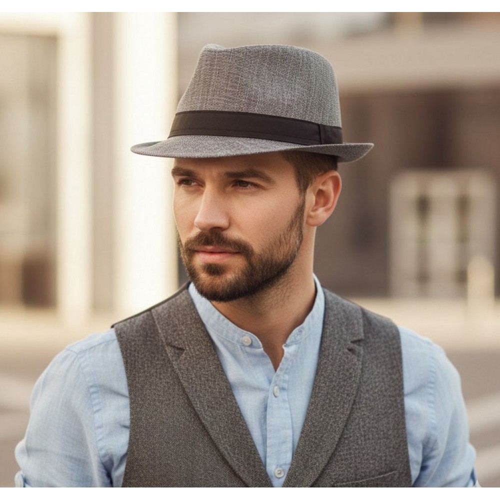Класичний капелюх у стилі Гетсбі та гангстерських вечірок. Легкий, з вузькими полями та контрастною стрічкою — підходить для тематичних образів, фотосесій, вечірок 20-х років та костюмованих заходів.