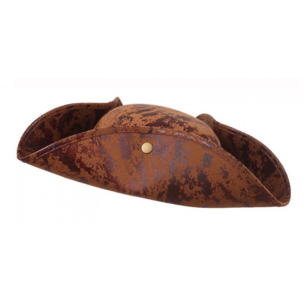 Шляпа Пірата Треуголка з кожзама (коричнева, під старину)