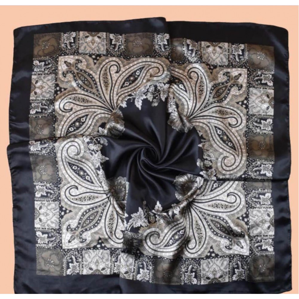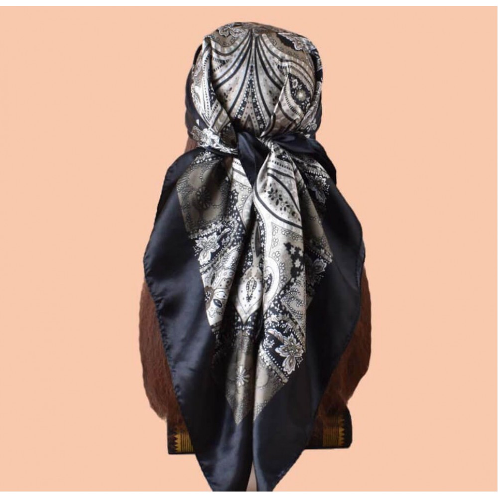 Жіночий хустка з класичним візерунком пейслі — універсальний аксесуар, який легко вписується в будь-який гардероб. Чорно-сіра гама виглядає стримано і дорого, а вінтажний орнамент додає образу глибину і стиль.