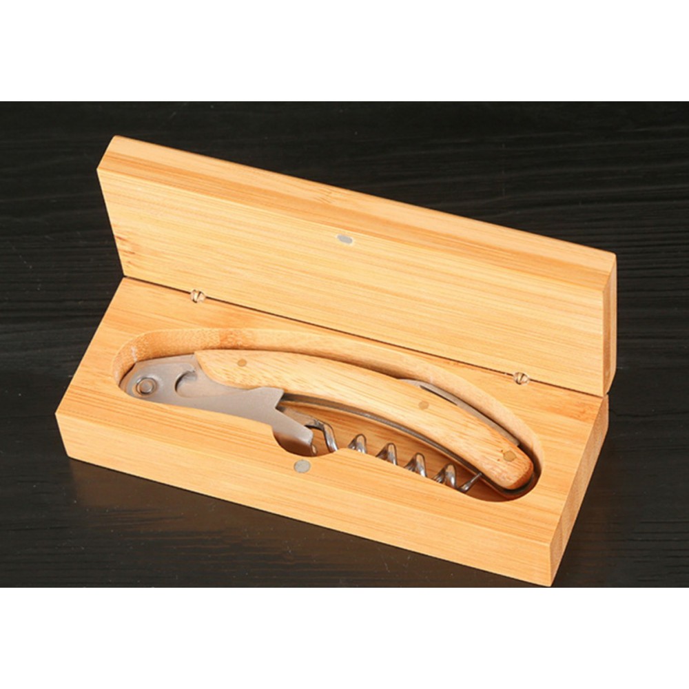 Компактний штопор для вина в акуратній дерев'яній коробці — хороший варіант для подарунка та для домашнього використання. Виглядає стильно, зручно зберігається і не валяється серед дрібниць на кухні або в барі. Підійде для любителів вина, подарункових наборів і красивих аксесуарів для сервірування.