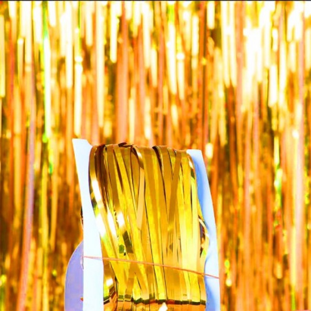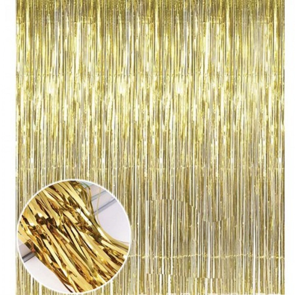 Яскрава штора із фольги золотого кольору розміром 1х2см (довжина 2м та ширина 1м). Шторки з фольги широко використовуються для оформлення та декорації сцен, фотозон, місць для фотосесій та створення святкової атмосфери в приміщенні! Шторка виготовлена із фольги гарної якості.