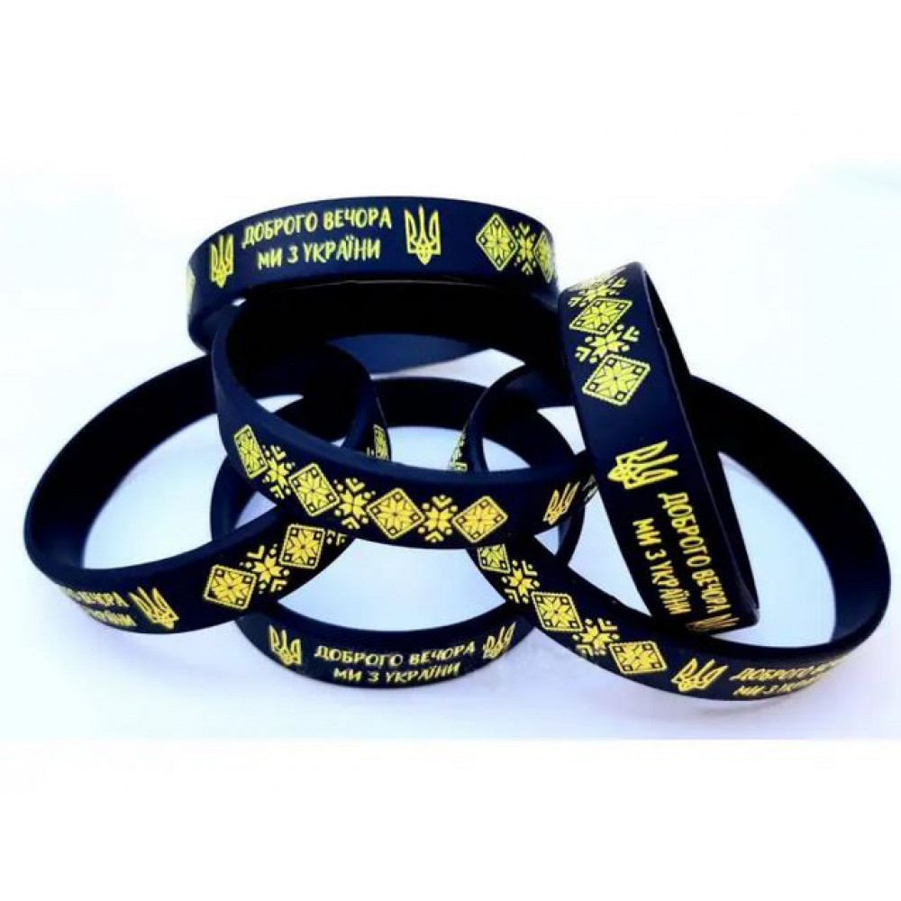 Силіконові браслети з написом "Доброго вечора ми з України". Ці браслети відображають нашу гостинність та позитивний дух.
