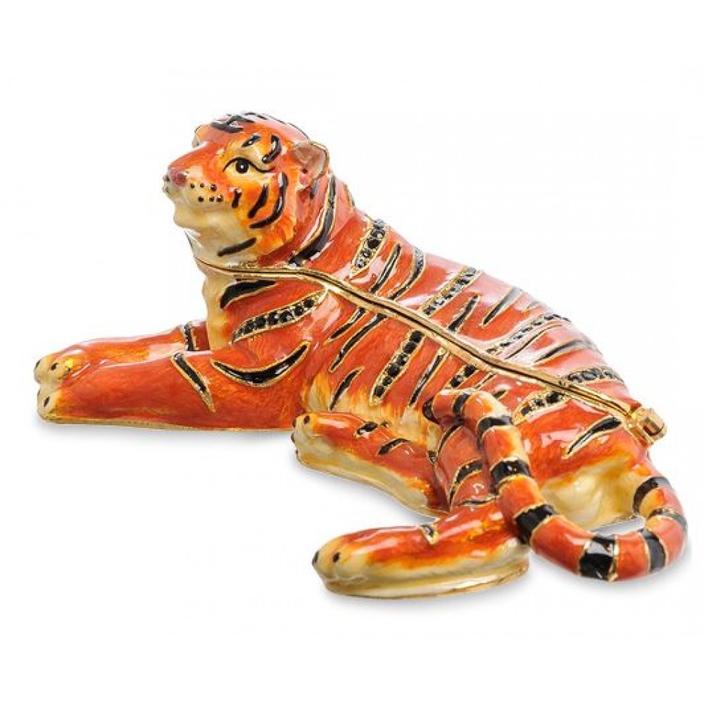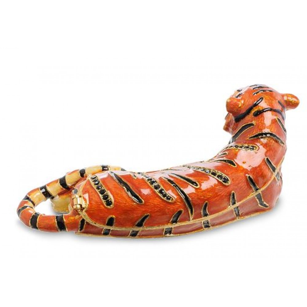 Маленька скульптурка має прикладне значення. Голова і спина тигра відкидаються на петлі і відкривають простір невеликої скриньки. У неї зручно буде скласти дорогоцінності, що найчастіше використовуються, які немає сенсу далеко ховати, але при цьому варто тримати напоготові.