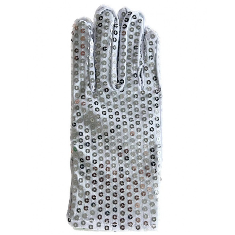 Сріблясті рукавички з паєтками — це швидкий спосіб додати образу світла софітів, навіть якщо вечірка проходить у звичайному барі чи клубі. Щільна еластична основа м'яко облягає долоню, а великі круглі паєтки створюють ефект «дзеркальної кулі»: руки красиво переливаються при кожному русі, на танцполі та на фото це виглядає дуже ефектно.