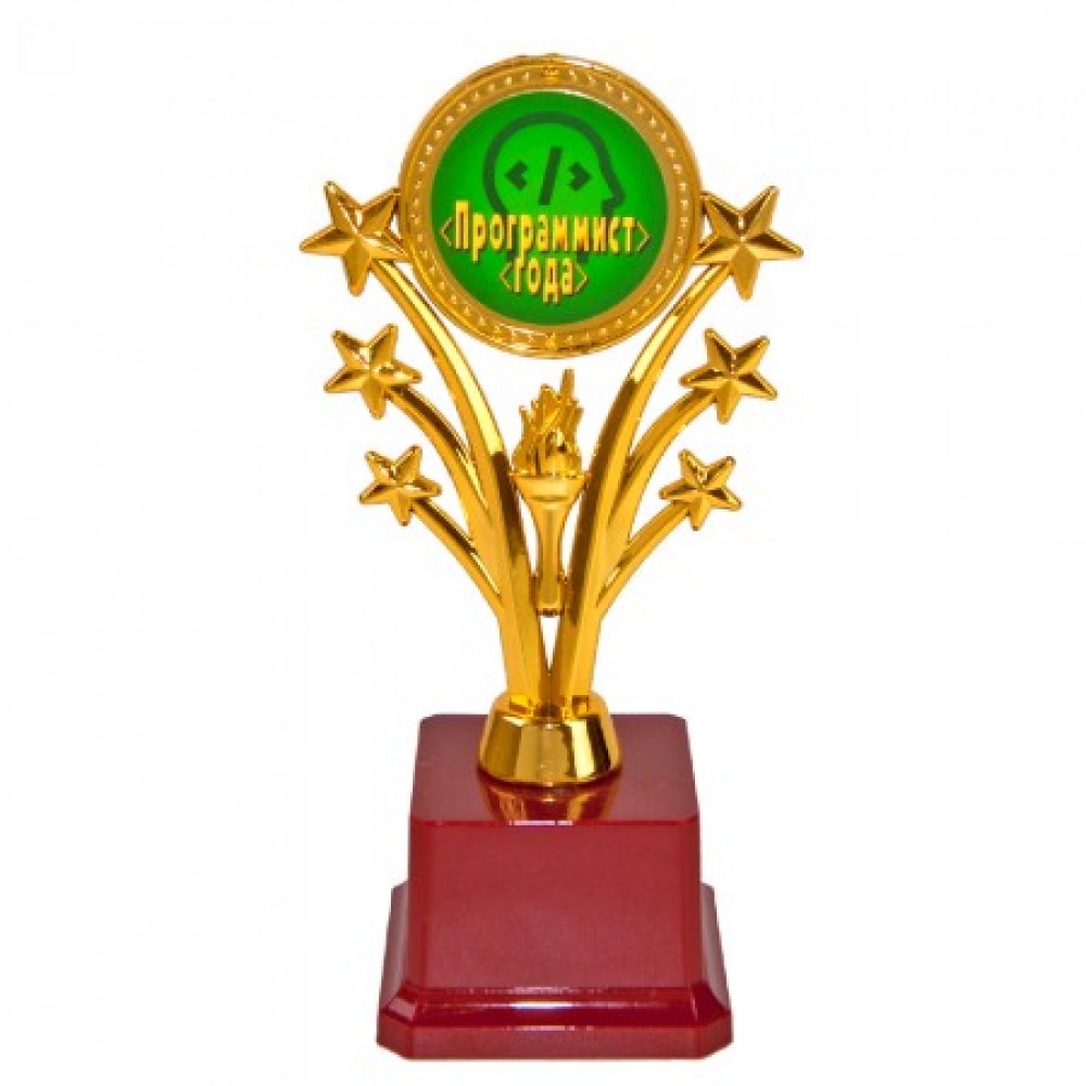 Статуетка "Програміст року" Зірковий салют - чудова та оригінальна нагорода, її можна вручити програмісту за ефективну роботу. Подарунок символічний і незвичайний, яка показує наскільки цінна для Вас людина, яку вітаєте! Статуетка виконана у вигляді 3D композиції зірок. Фігурка виконана золотим кольором на класичному бордовому п'єдесталі. Статуетка упаковується в індивідуальний тубус з прозорого пластику. Унікальне пакування розроблене компанією Подарок-ТУТ! На бордовому п'єдесталі статуетки може бути присутня імітація мармурових розводів. Оригінальні нагороди та призи в наявності та на замовлення – відмінна ціна. Великий вибір кубків, медалей та нагородних статуеток для будь-якого приводу в інтернет магазині Подарок-ТУТ!