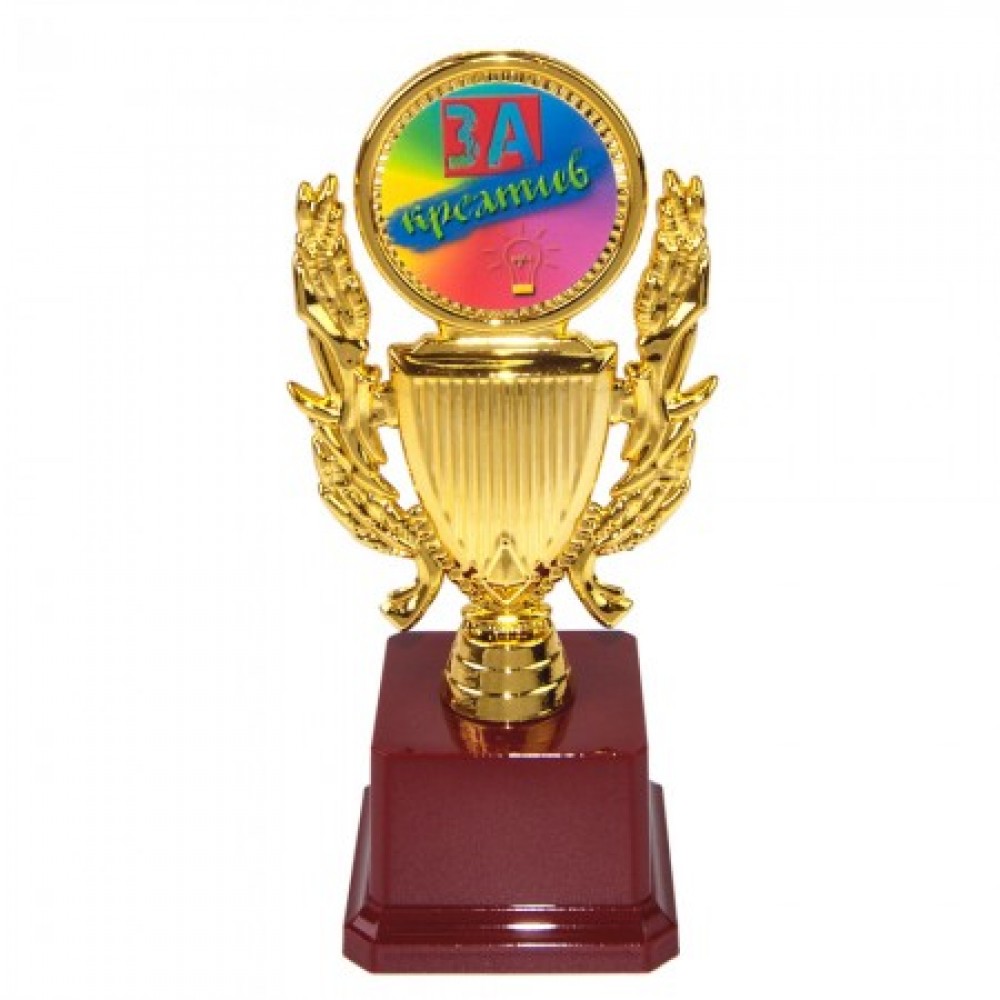 Статуетка 57154 За креатив Кубок з вінком - чудова та оригінальна нагорода співробітникам чи колегам. Подарунок символічний і незвичайний, який говорить як дорогий для Вас вітається! Статуетка виконана у вигляді 3D композиції куба нагороди. Фігурка виконана золотим кольором на класичному бордовому п'єдесталі. Статуетка упаковується в індивідуальний тубус з прозорого пластику. Унікальне пакування розроблене компанією Подарок-тут! На бордовому п'єдесталі статуетки може бути присутня імітація мармурових розлучень. Оригінальні нагороди та призи в наявності та на замовлення – відмінна ціна. Великий вибір кубків, медалей та нагородних статуеток для будь-якого приводу в інтернет магазині Подарок-ТУТ!