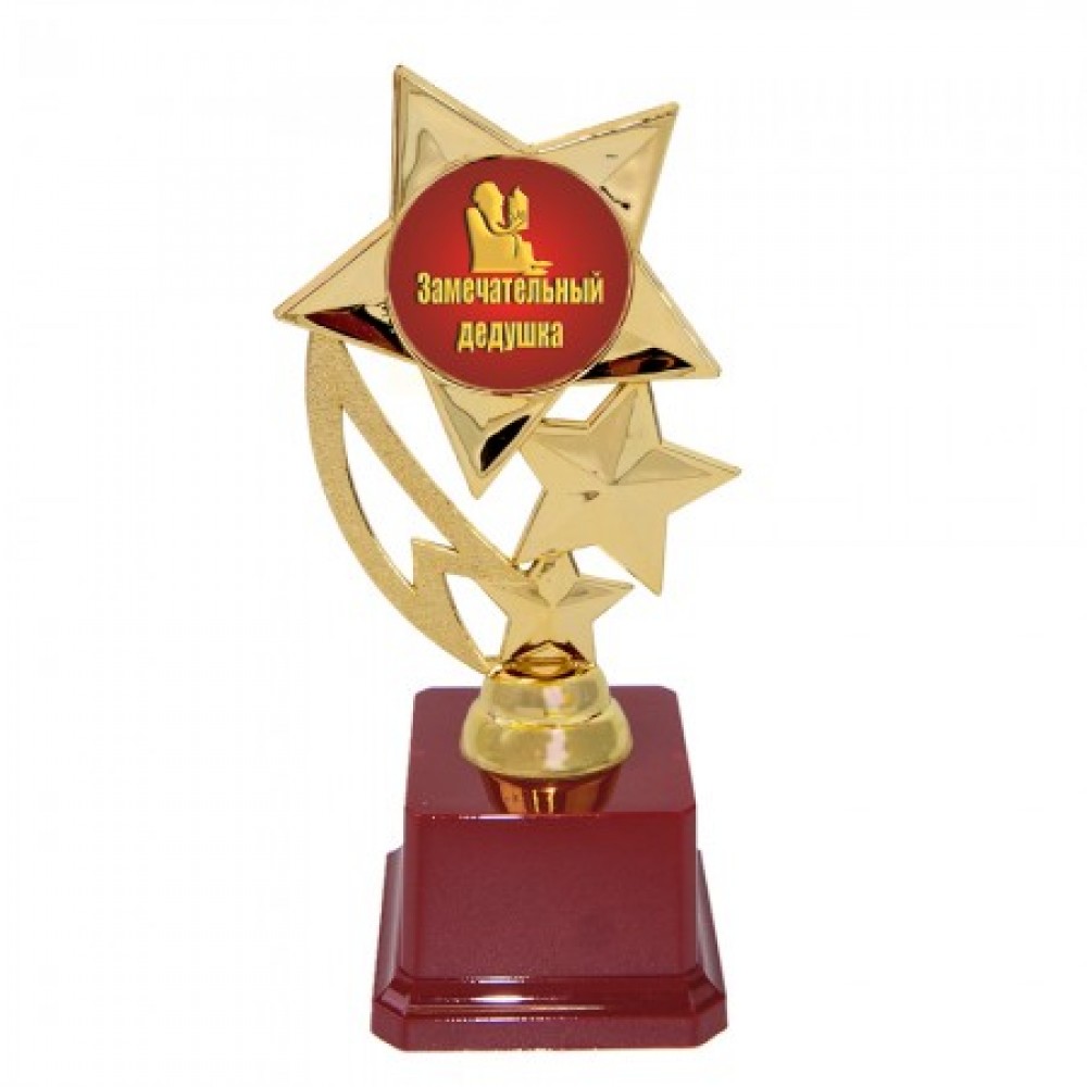 Статуетка 57265 (Чудовий дідусь) Зірковий політ - відмінний та оригінальний сюрприз, який можна подарувати дідусеві на ювілей, на день народження або просто як презент разом з якимсь подарунком. Подарунок символічний і незвичайний, який говорить який дорогий для Вас дідусь! Статуетка виконана у вигляді 3D композиції зіркового польоту, всередині якої напис російською мовою. Фігурка виконана золотим кольором на класичному бордовому п'єдесталі. Статуетка упаковується в індивідуальний тубус з прозорого пластику. Унікальне пакування розроблене компанією Подарок-тут! На бордовому п'єдесталі статуетки може бути присутня імітація мармурових розводів. Оригінальні нагороди та призи в наявності та на замовлення – відмінна ціна. Великий вибір кубків, медалей та нагородних статуеток для будь-якого приводу в інтернет магазині Подарок-тут!