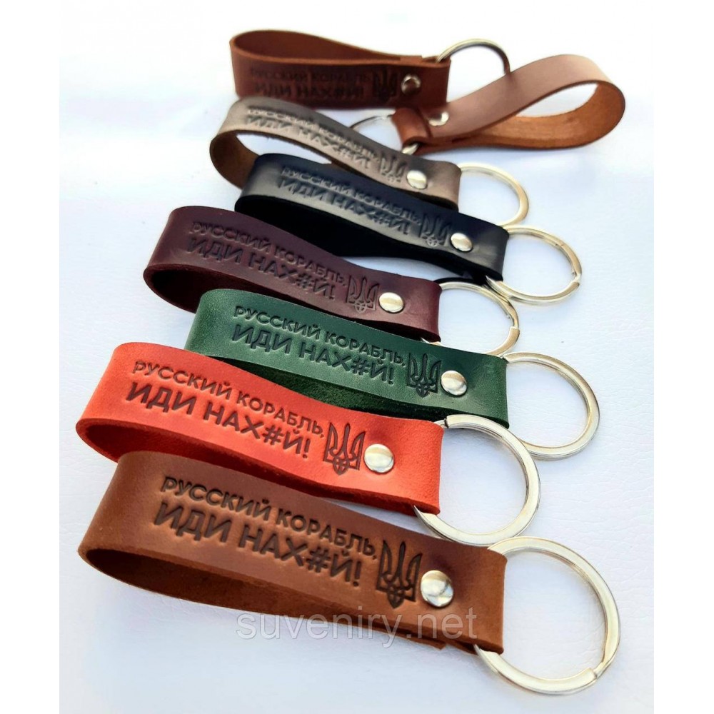 Сувенірні шкіряні брелки на ключі російський корабель йди..., Унісекс (2159) - Автомобільний