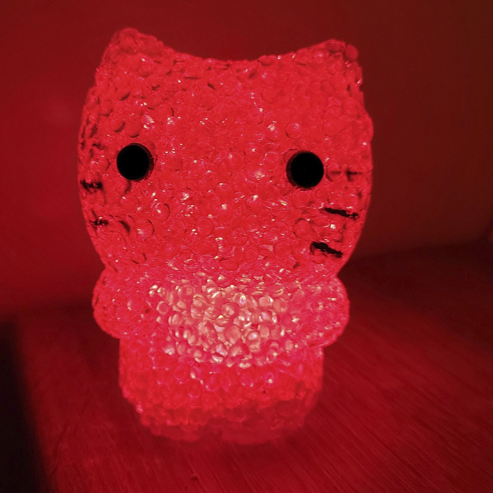 Коли у вас підростає юна принцеса, то поява в її кімнаті різних постерів і милих, часом зовсім непотрібних дрібниць, неминуче. Маленька модниця прагне створити оригінальний інтер'єр будь-якими шляхами. Порадуйте доньку, купіть їй в інтернет-магазині Подарок-ТУТ! незвичайний подарунок - Світильник Кітті. У темний час доби він дуже пожвавить кімнату та сформує сприятливу атмосферу для перегляду мультфільмів або прослуховування музичних треків. Нічник працює від батарейок G13 (LR 44). має 7 кольорів світіння, які змінюються автоматично. Цей сувенір не гріється і не становить жодної небезпеки дітям та тваринам. Батарейки у світильнику є демонстраційно-витратним матеріалом та у вартість світильника не входять.