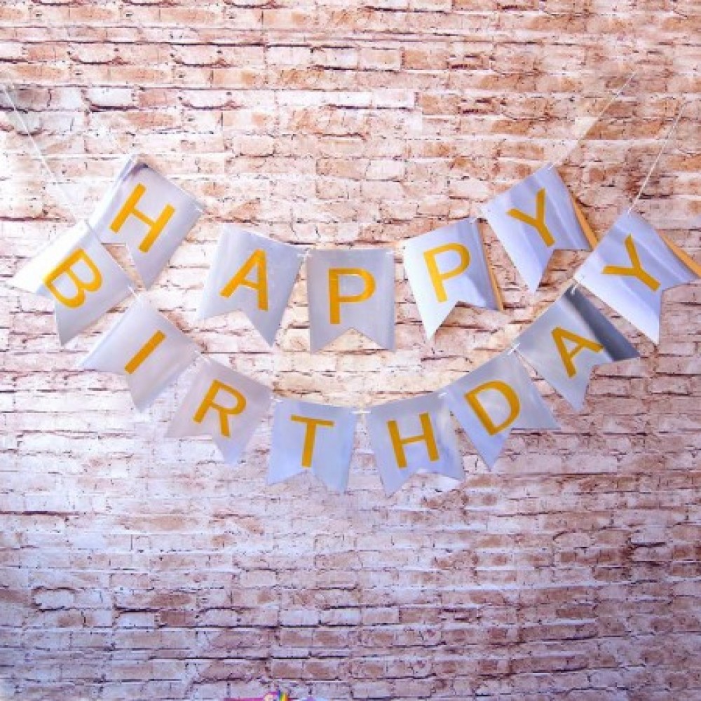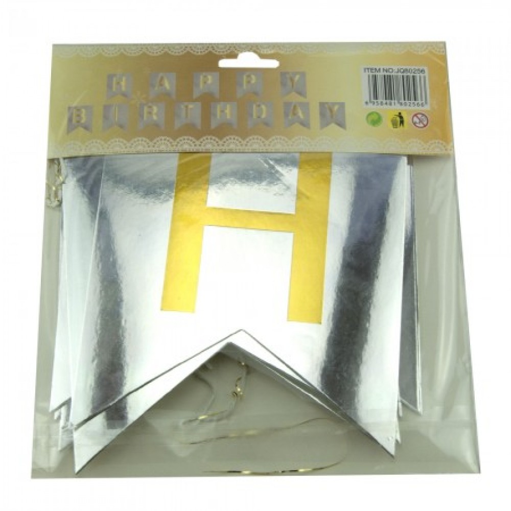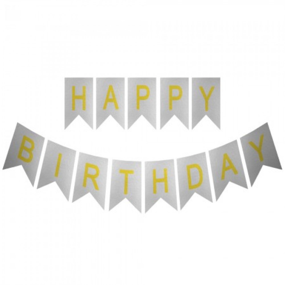 Святкова гірлянда прапорці Happy Birthday, срібло