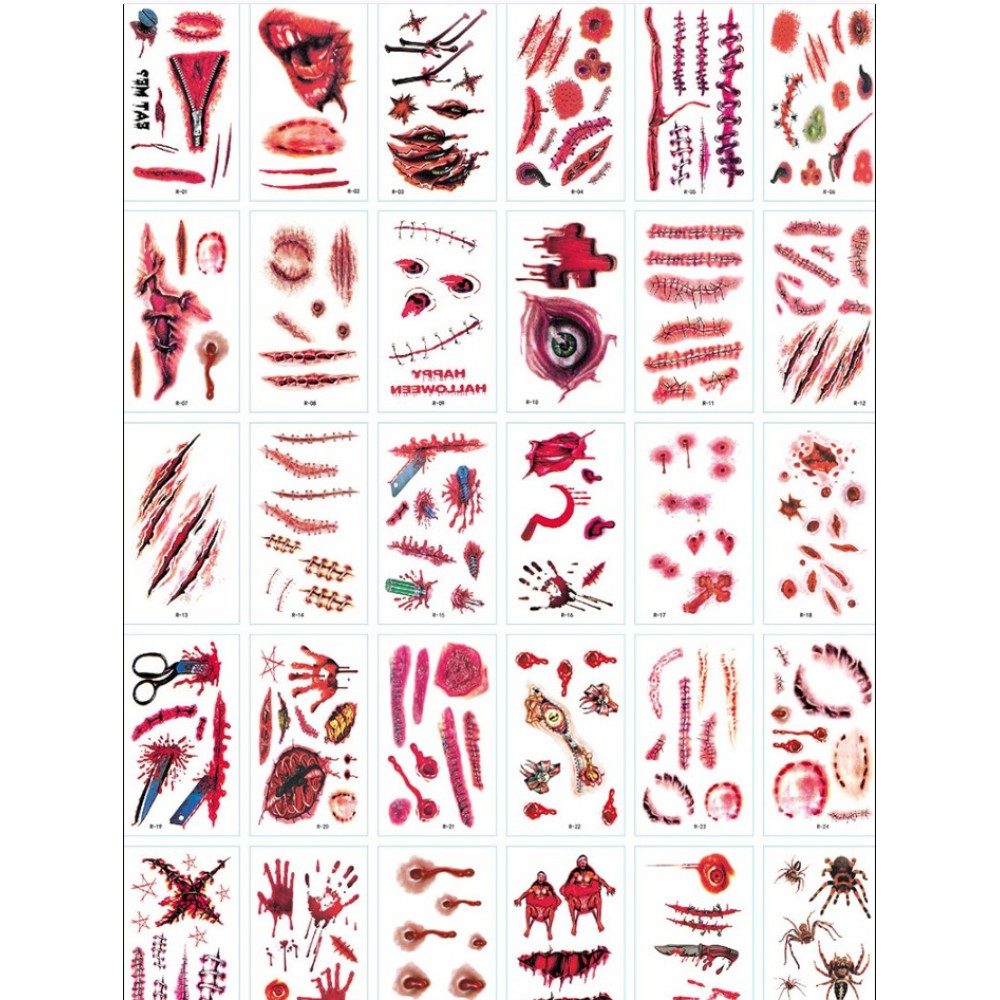 Перекладні татуювання-шрами на Геловін - створи моторошний образ із набором із 30 наліпок!