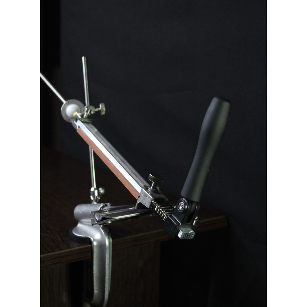 Надійна фіксація всіх елементів верстата і заточується інструменту, а також зручна ручка ергономічної форми, що значно спрощують весь процес заточування і підвищують якість заточування. Лезо рекомендується заточувати плавним рухом від себе, не роблячи сильного тиску на клинок. В зібраному вигляді верстат займає мало місця. Його запросто можна транспортувати і зберігати в зручній сумці, яка входить в комплектацію.