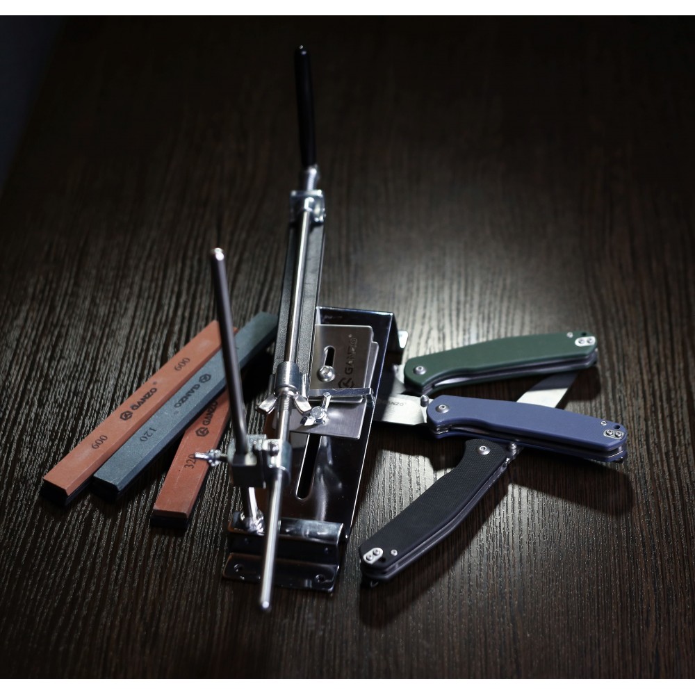 Ganzo Touch Steel призначена для стаціонарного використання. На підставі точила навіть передбачені отвори під болти для кріплення на столі або на дошці. У цьому випадку, положення зошита буде жорстко зафіксовано, а будь-яке її ковзанню під час роботи — виключено. Але і транспортування точильного інструменту також не представляє проблем. Модель Touch Steel має досить компактні розміри в складеному стані завдяки тому, що її напрямна розбірна і складається з двох окремих деталей і ручки. Зберігати точило можна у вхідному в комплект чохлі.