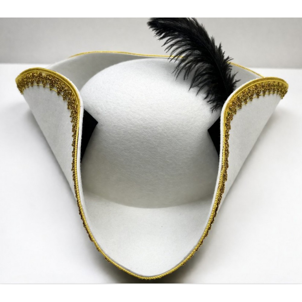 Та сама капелюх, яка відразу робить образ «дорожчим» і помітнішим. Біла піратська трикутка із золотою обробкою та пером — це вже не просто аксесуар, а повноцінний акцент в образі. Підходить і для яскравих вечірок, і для фотосесій, і для тематичних заходів, де хочеться виглядати ефектно, а не «як усі».