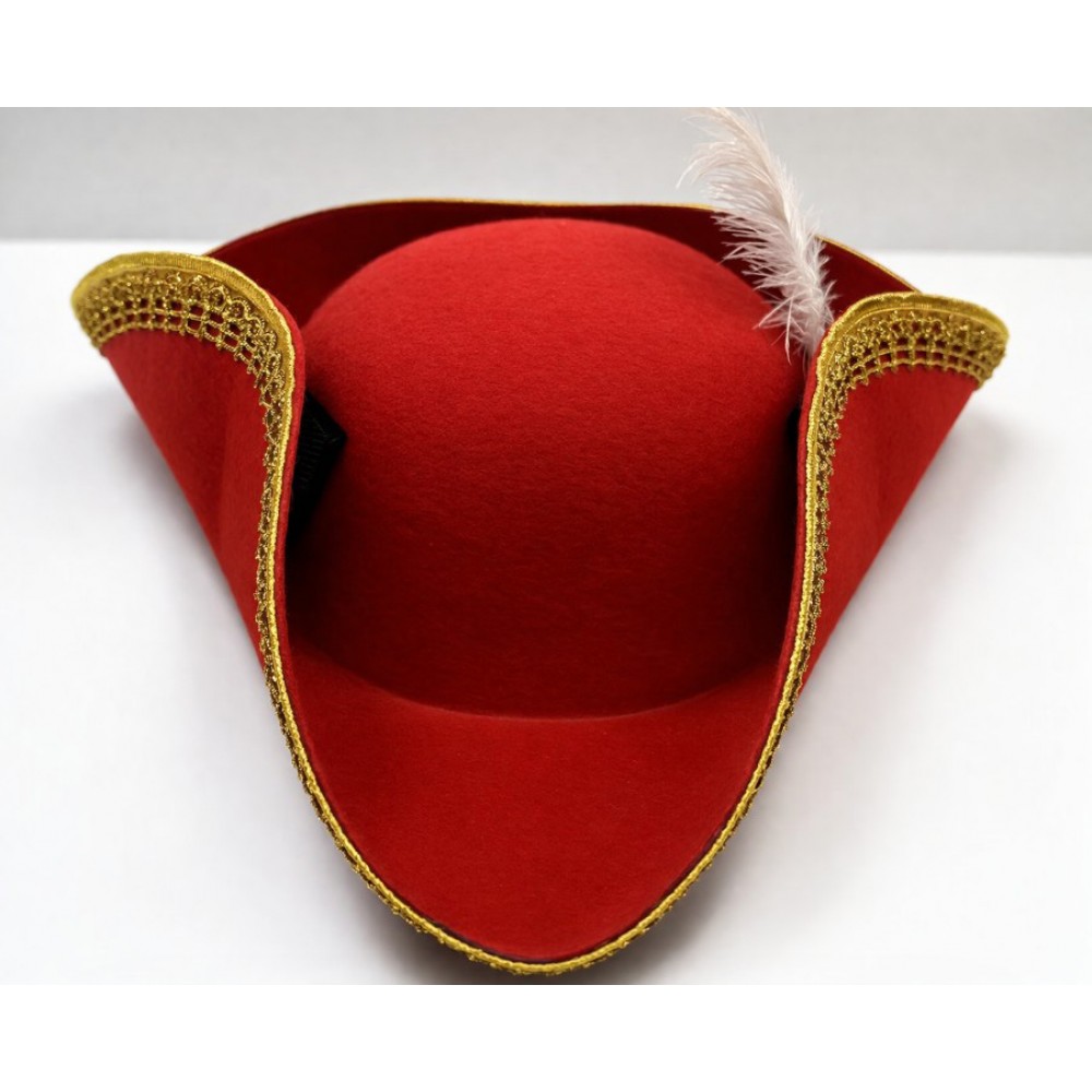 Цей яскравий піратський капелюх одразу привертає увагу — насичений червоний колір, акуратна золота обробка та декоративне перо створюють той самий образ капітана, який не губиться в натовпі. Такий аксесуар часто беруть не просто «для костюма», а щоб зробити образ завершеним і дійсно помітним на фото чи відео. Підходить як для вечірок, так і для виступів, дитячих свят або тематичних заходів.