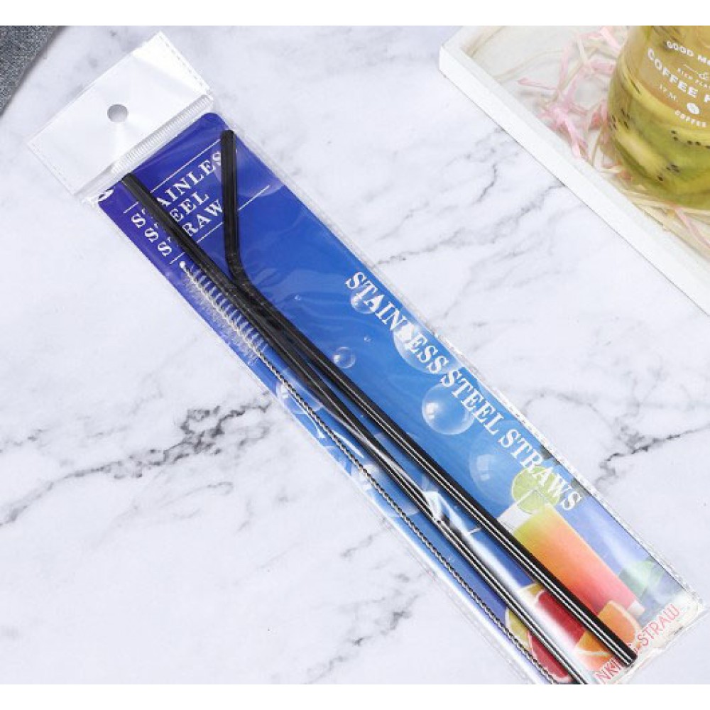 Трубочки з нержавіючої сталі 304, чорні 6×215 мм — набір 3-в-1 (пряма, зігнута, щітка)