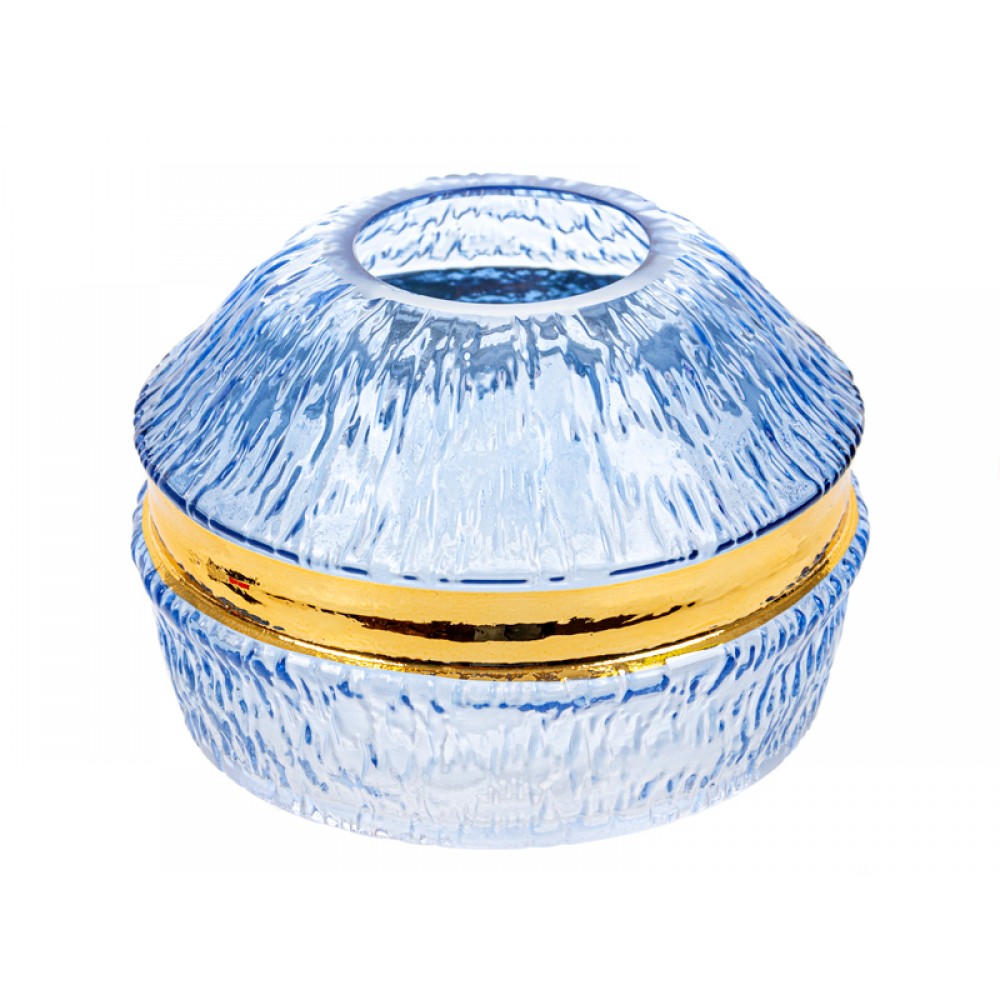 Ця ваза виготовлена у Китаї з прозорого скла. Її розміри становлять 18х12 см, а головною особливістю є блакитний колір у її дизайні.