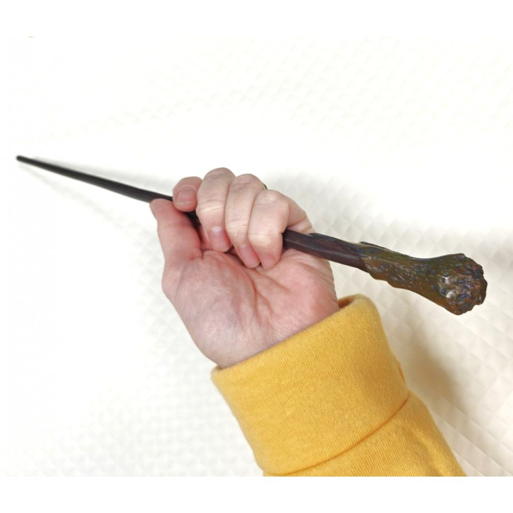Сама форма палички нагадує класичну конструкцію з кіноісторій про юного чарівника: тонкий звужений кінчик і більш фактурна рукоятка, що дозволяє зручно тримати її. Якщо правильно налаштуватися, вже при першому помаху відчуваєш, як магія готова підтримати кожен твій крок, а кавовий колір викликає асоціації з теплом і затишком вечорів, проведених за книжковими сторінками.
