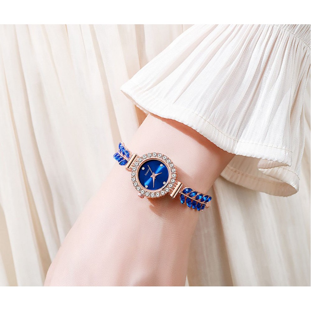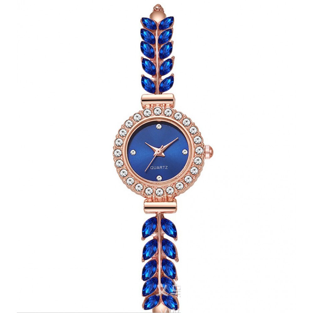 Жіночий годинник браслет з камінням Листя та стразами, сапфірово-синій