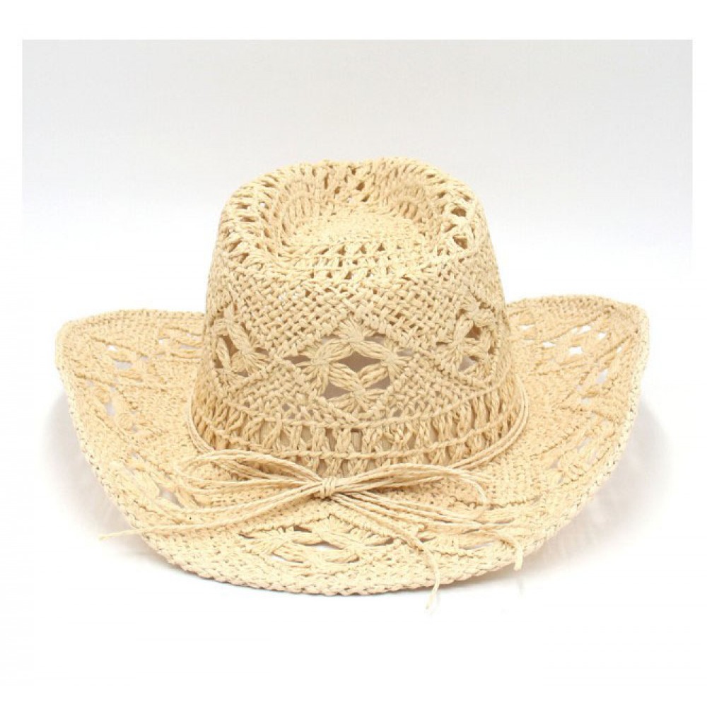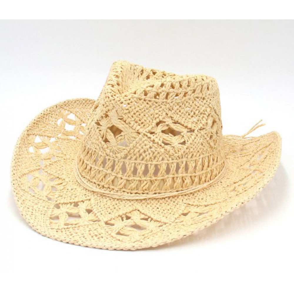 Жіночий ковбойський капелюх з плетеної соломи з ажурним візерунком і загнутими полями